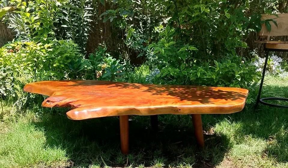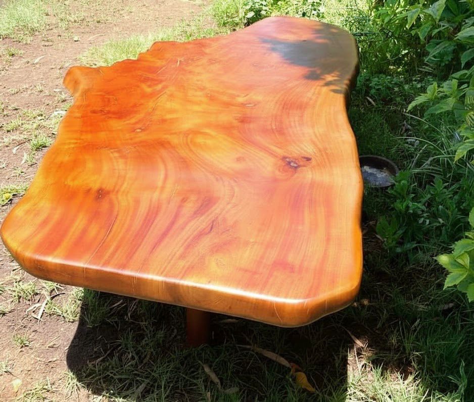 Warm golden tones flow across a single natural slab, shaped to preserve the wood’s smooth curves and rich character.