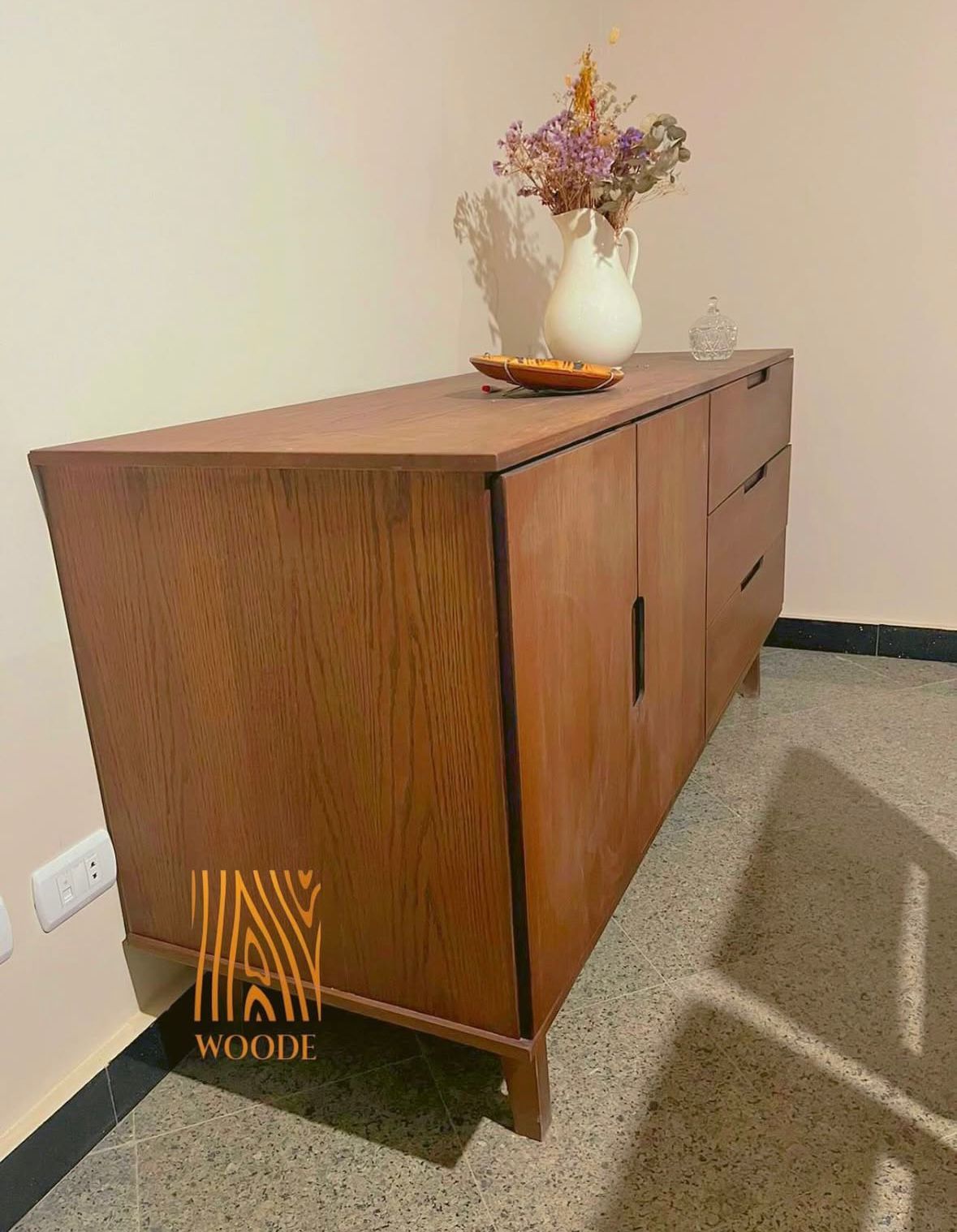 The Classic Credenza is a refined storage solution featuring a smooth, minimalist wood exterior and clean-lined metal handles. With a mix of spacious cabinets and drawers, it offers a timeless aesthetic that fits seamlessly into any modern home or office.