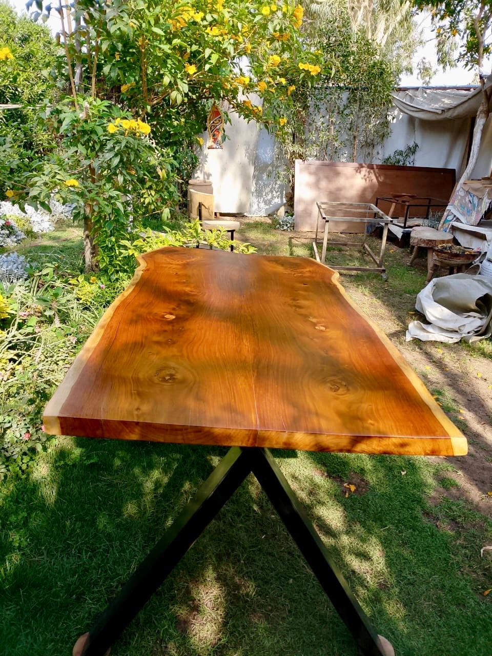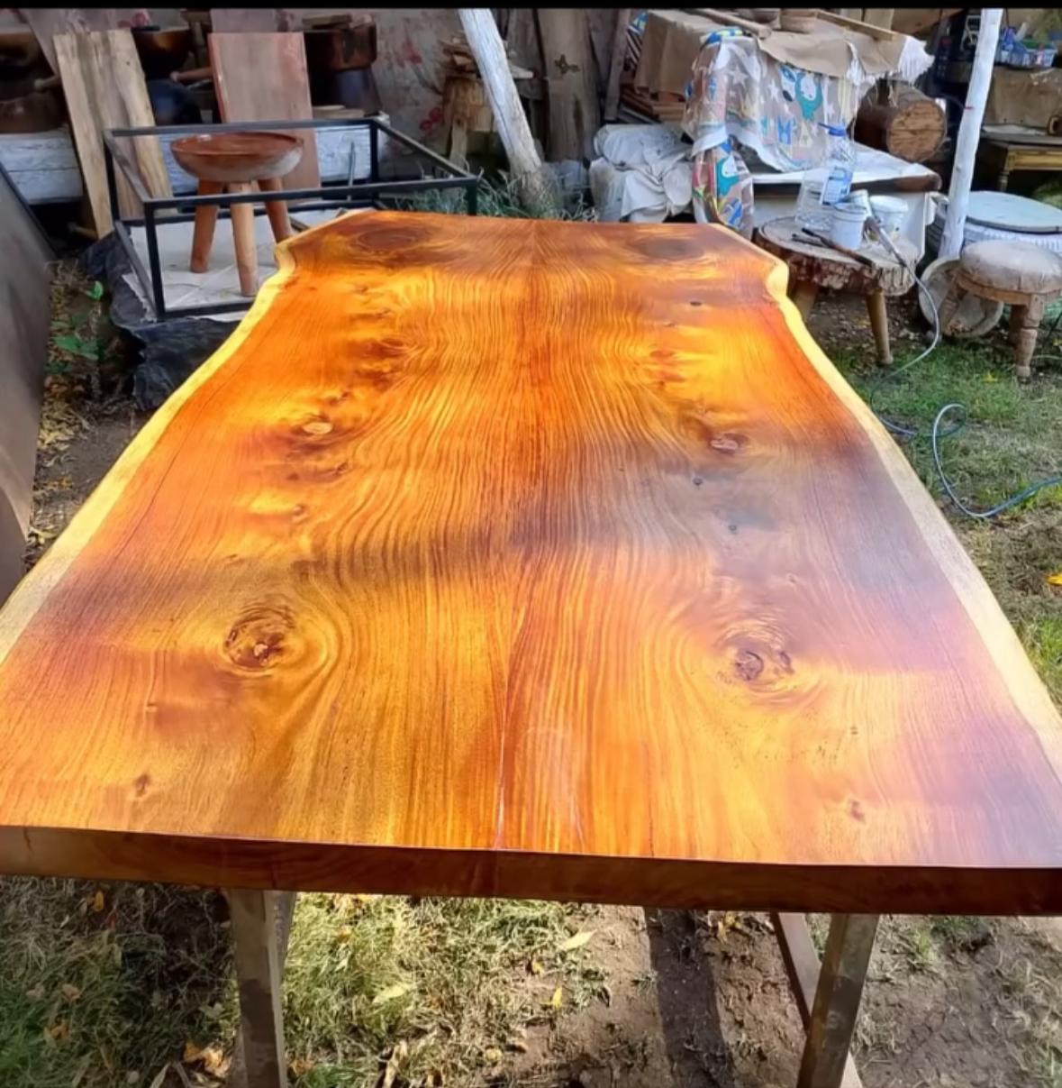 The Golden Mesa is a grand dining table designed for connection and timeless style. The expansive surface is crafted from premium solid wood, hand-finished to a warm, honey-toned glow that highlights the natural knots and flowing grain patterns. Supported by sleek, industrial-style legs, it offers a perfect balance between rustic charm and contemporary architecture. Built to be the heart of the home, this table provides a generous and inviting space for family gatherings and lasting memories.