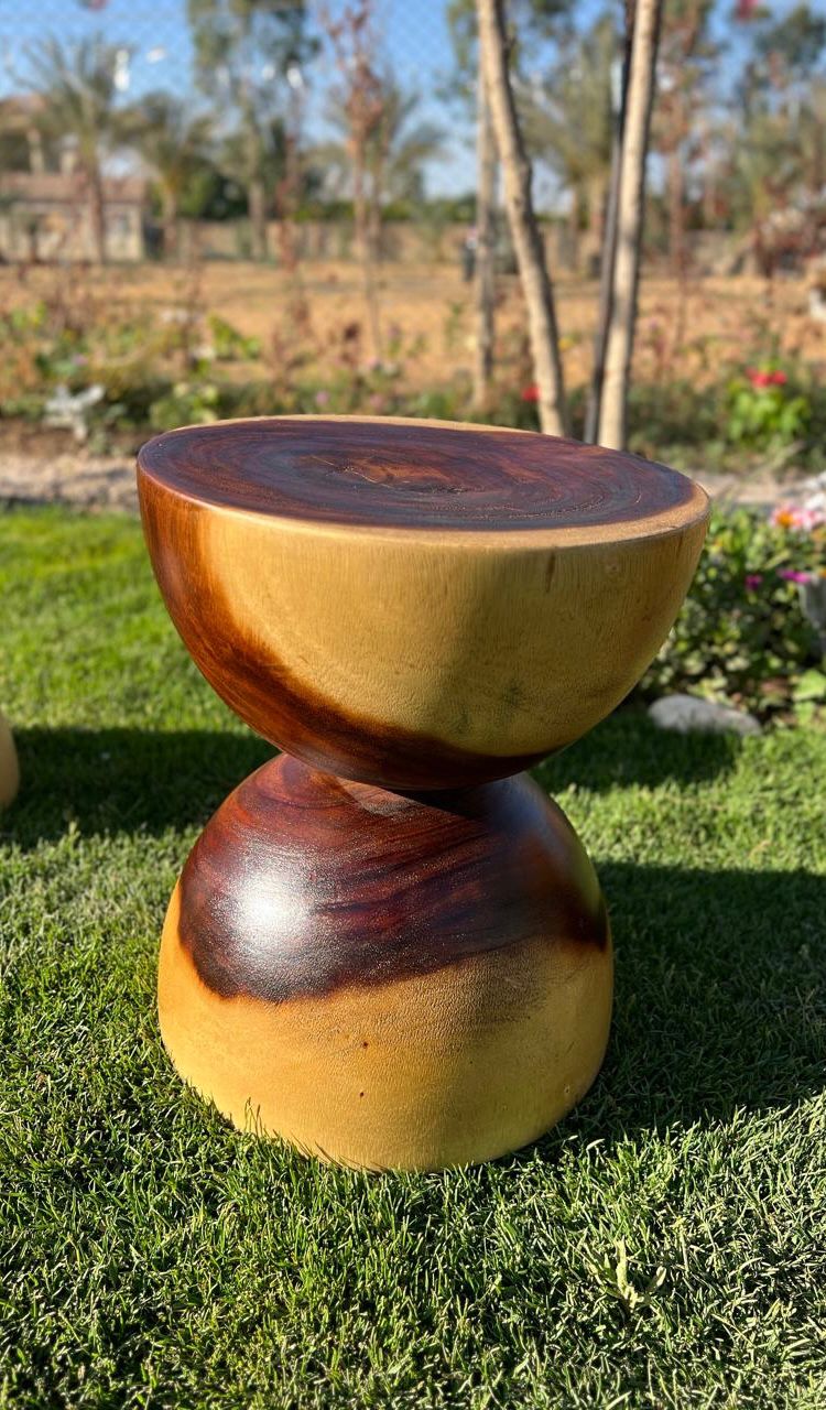 A massive, heavy-duty coffee table crafted from a thick slice of solid heartwood, the polished deep chocolate surface flows into a rugged, live edge and is supported by sleek, industrial black metal legs for a bold, commanding presence.