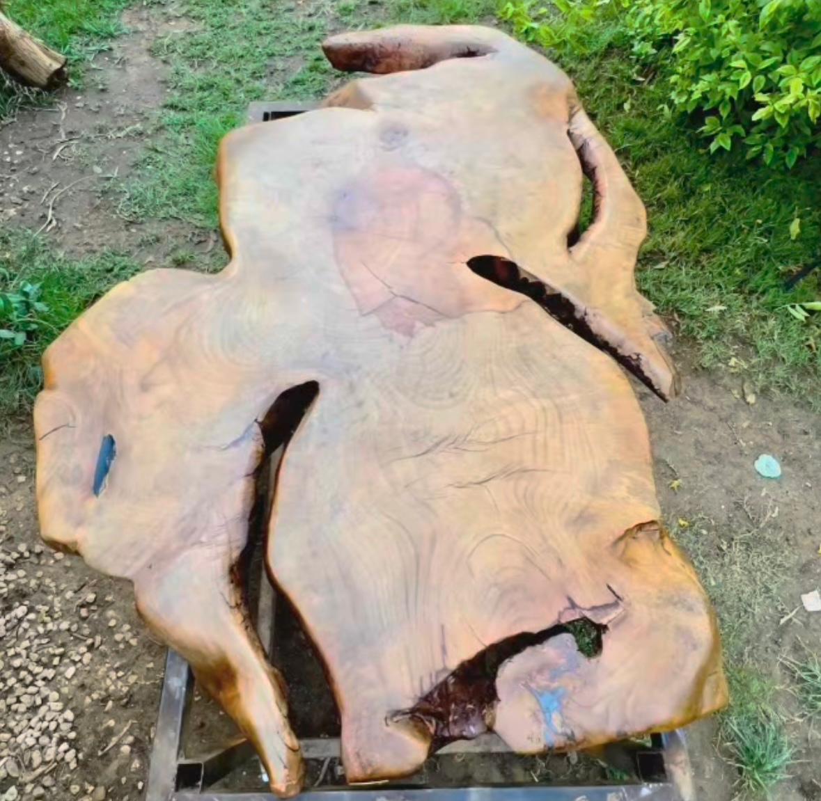 Its free-form shape, raw edges, and visible grain celebrate the untouched beauty of the wood.