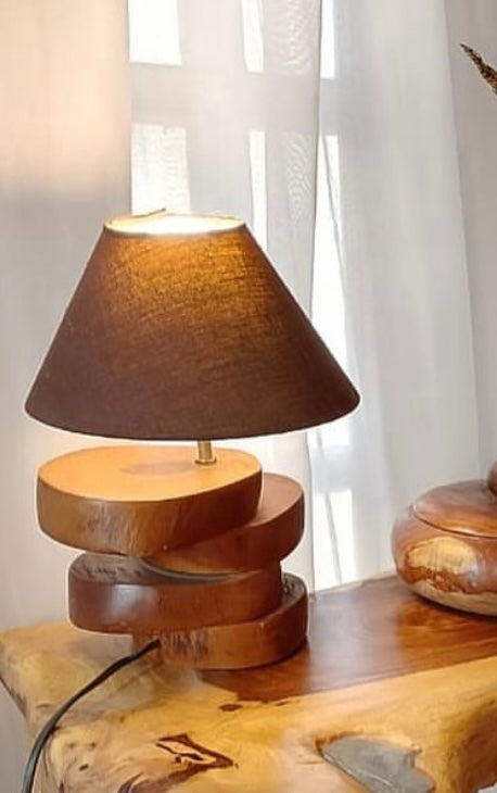 The Woodstack Whisper is a quiet conversation between balance and light. Formed from layered solid wood pieces, its stacked design creates a sculptural rhythm that feels both grounded and modern. The warm wooden shade softens the glow, casting a calm, intimate atmosphere across the room. Handmade with care, every Woodstack Whisper carries natural variations in grain and tone, making each lamp a subtle statement of craft, warmth, and presence.